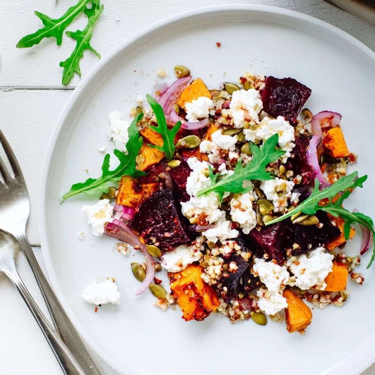 If you're planning ahead, roast the beets and sweet potatoes a day before and store in separate containers—just bring everything to room temperature before assembling for the best texture and taste.