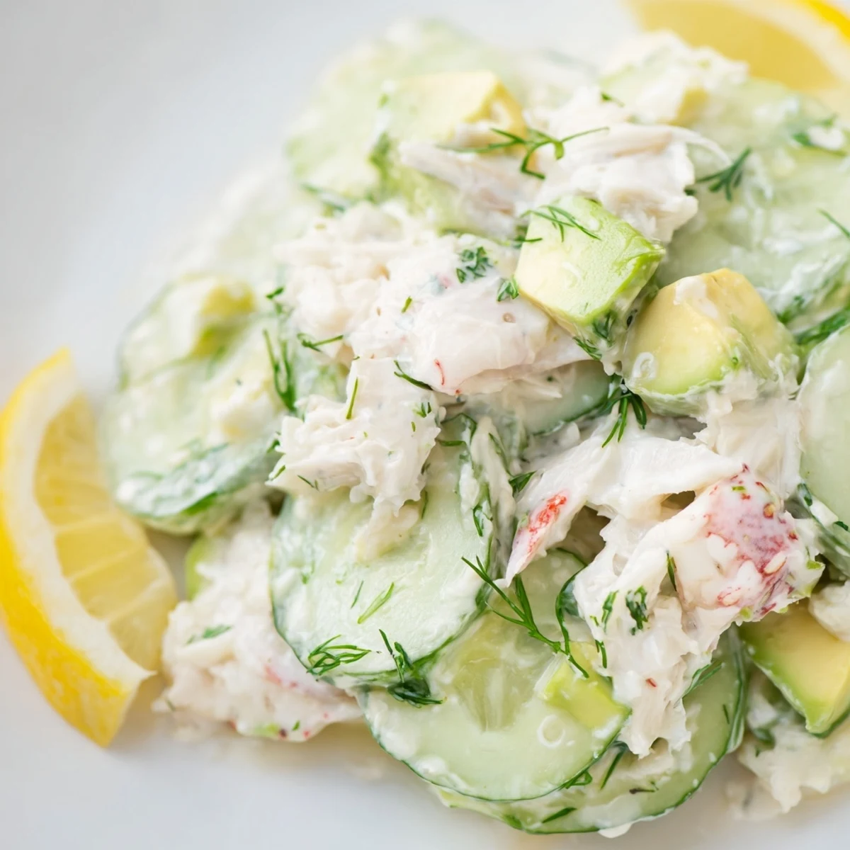 This elegant summer dish combines crisp, thinly sliced cucumbers with delicate sweet crab meat for a refreshing light meal. The creamy tangy dressing features mayonnaise, sour cream, fresh lemon juice, and Dijon mustard, perfectly complementing the seafood. Ready in just 15 minutes with no cooking required, this salad serves four and works beautifully as an appetizer or main course. Garnish with fresh dill and lemon wedges for an impressive presentation.