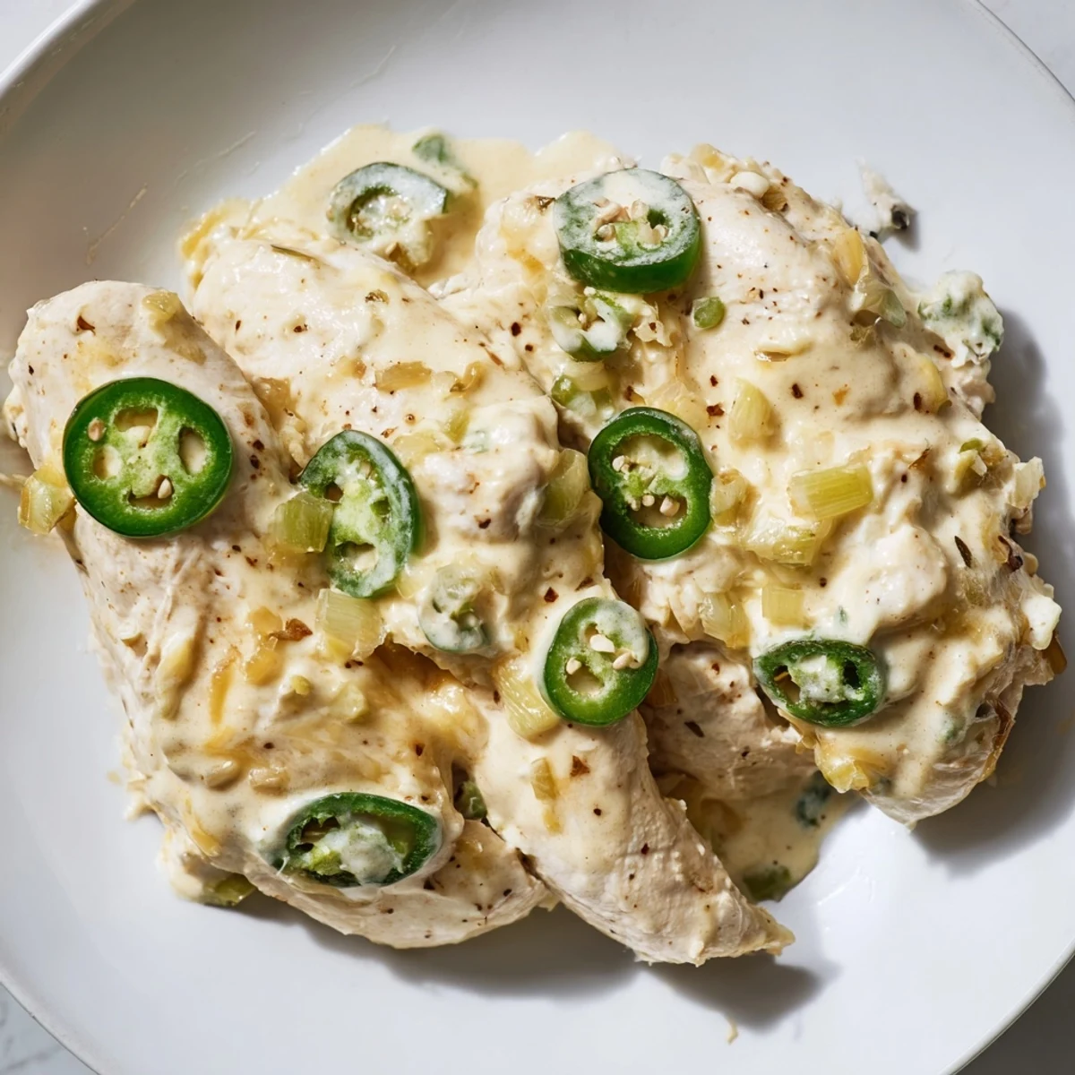 This dish features tender chicken breasts seared to golden perfection, then simmered in a velvety sauce made with fresh jalapeños, aromatic garlic, and Monterey Jack cheese. The cream balances the heat beautifully, while paprika and cumin add depth. Ready in under an hour, this gluten-free main delivers restaurant-quality flavor with simple techniques.