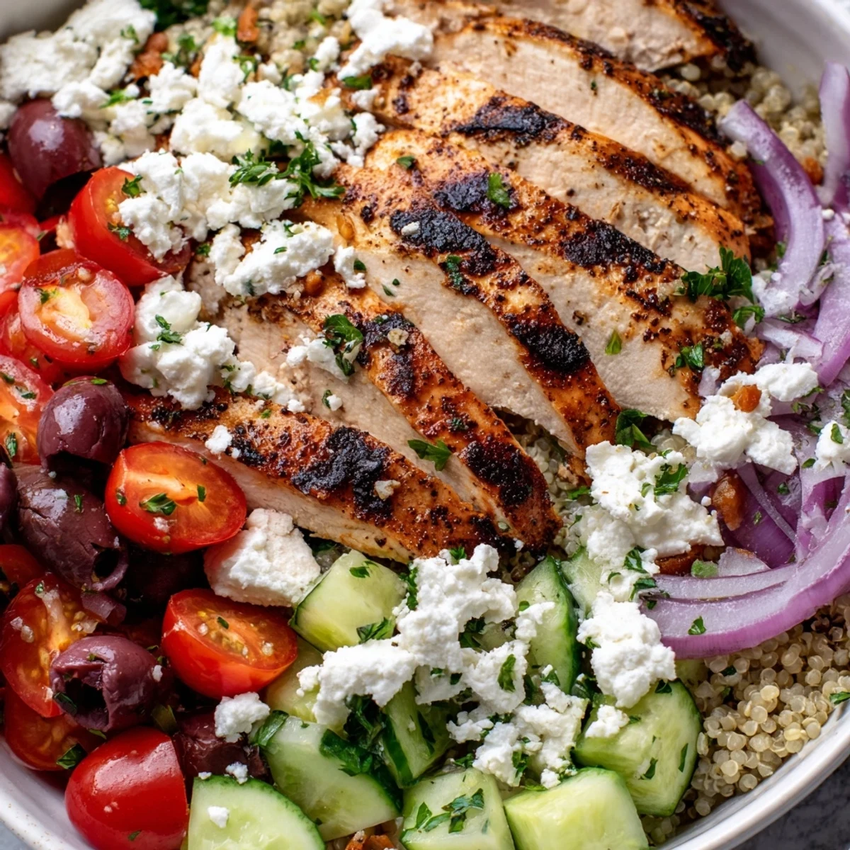 This wholesome bowl combines tender marinated chicken breasts with perfectly fluffy quinoa, creating a satisfying base for crisp vegetables and tangy feta. The Mediterranean-inspired dressing brings brightness through fresh lemon juice and a hint of honey, while Kalamata olives add authentic briny depth. Everything comes together in just 45 minutes, making it ideal for busy weeknights yet impressive enough for weekend gatherings.